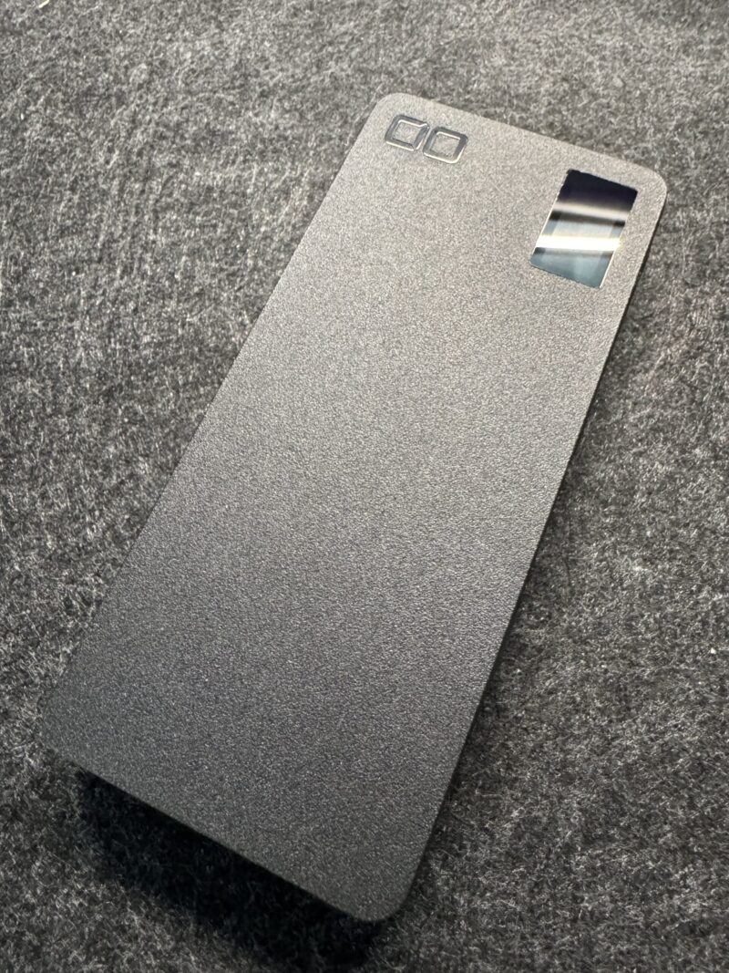 こちらが実際の製品です。写真のブラックの他に、ホワイトもあります。表面はシボ加工でとてもかっこいいです。