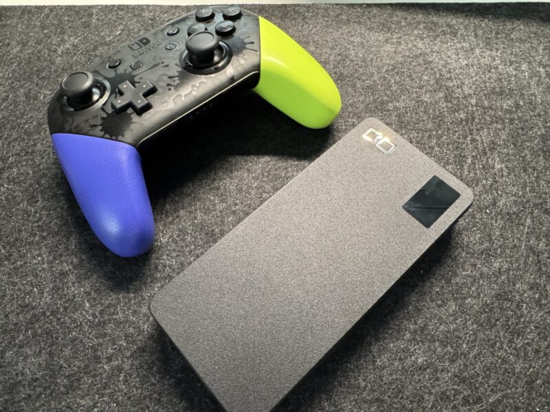 隣にNintendo Switchのプロコントローラーを置いてみました。大きさはこんな感じで、 iPhone15Proとほぼ一緒くらいのサイズです。