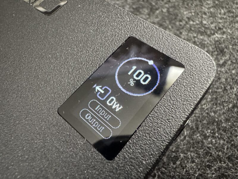 側面のボタンを押すと、バッテリー残量や入出力の状況を表示してくれます。これは便利。