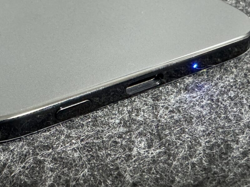 下の側面はこんな感じ。電源ボタン、充電するためのUSB Type-Cの挿入口、充電状況や稼働状況を確認するランプがついています。ランプは色によって充電残量を確認することができます。